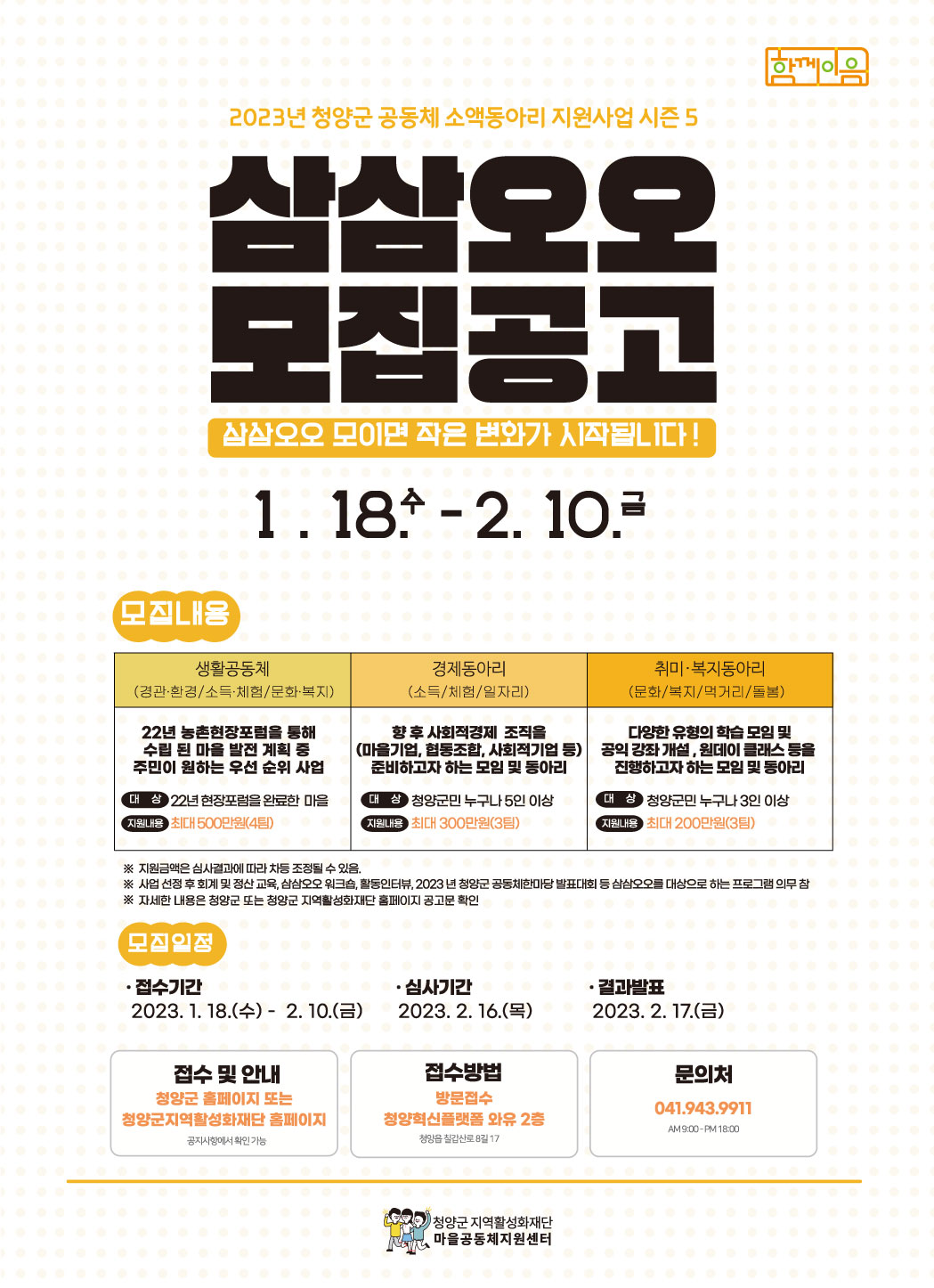 붙임 2023년 청양군 삼삼오오 동아리 모집 시작 1부. 끝.