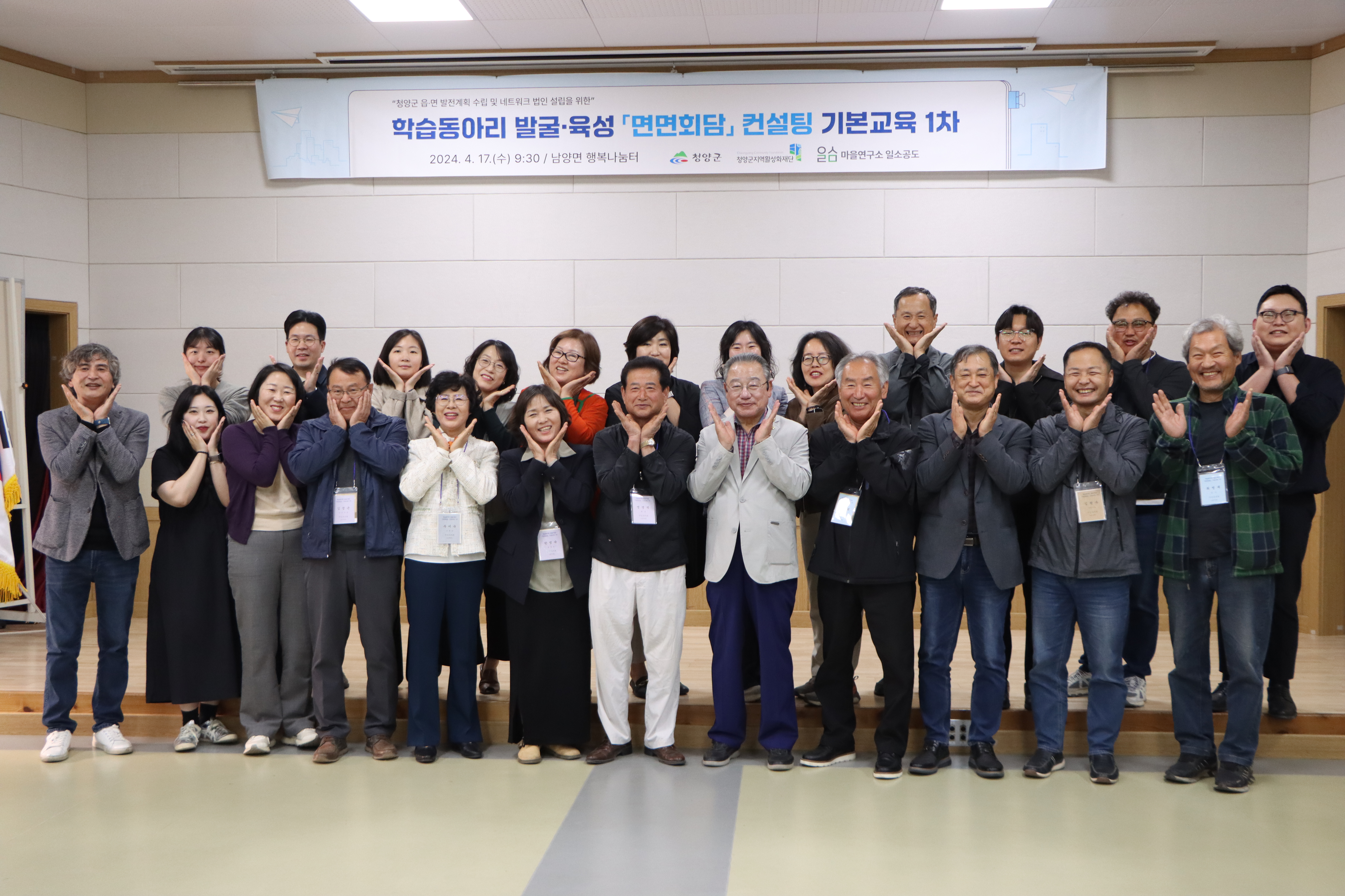 ✤ 청양군지역활성화재단(이사장 이종필 부군수, 이하 ‘재단’)은 지난 17일남양면 행복나눔터에서 2024년 ‘면면회담’으로 선정한 학습동아리를 대상으로 ‘1차 기본교육’을 진행하였다.