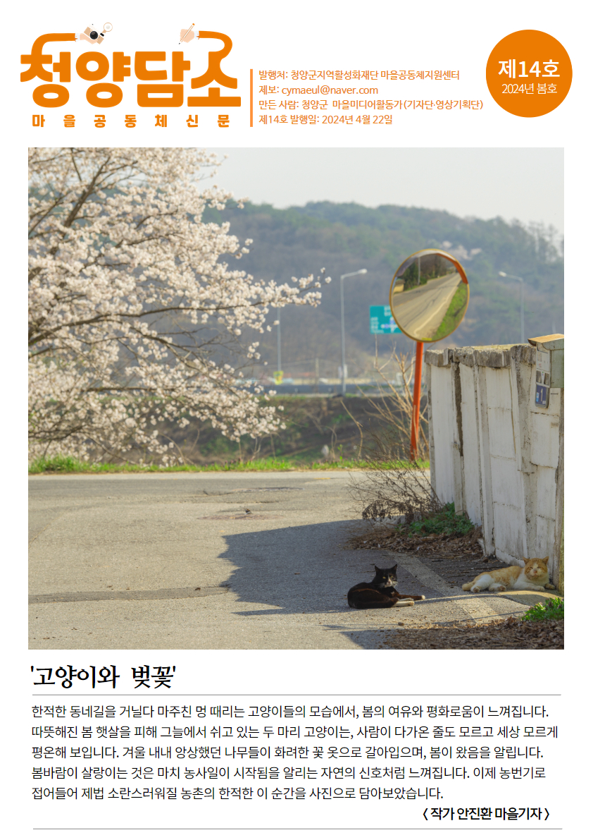붙임  청양담소-14호 1부.  끝.