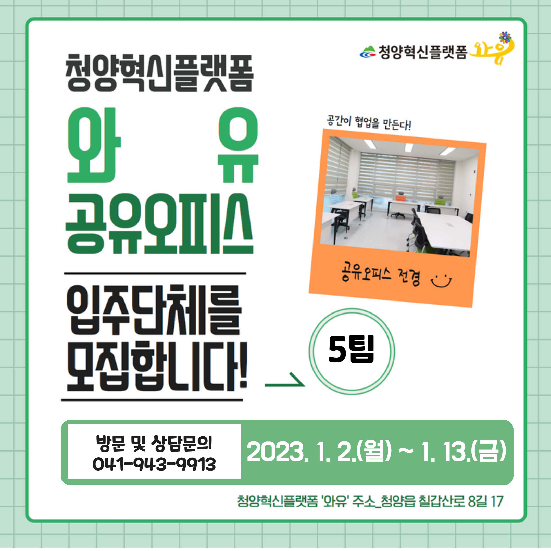 <청양혁신플랫폼 와유 『공유오피스』 입주단체 모집공고>