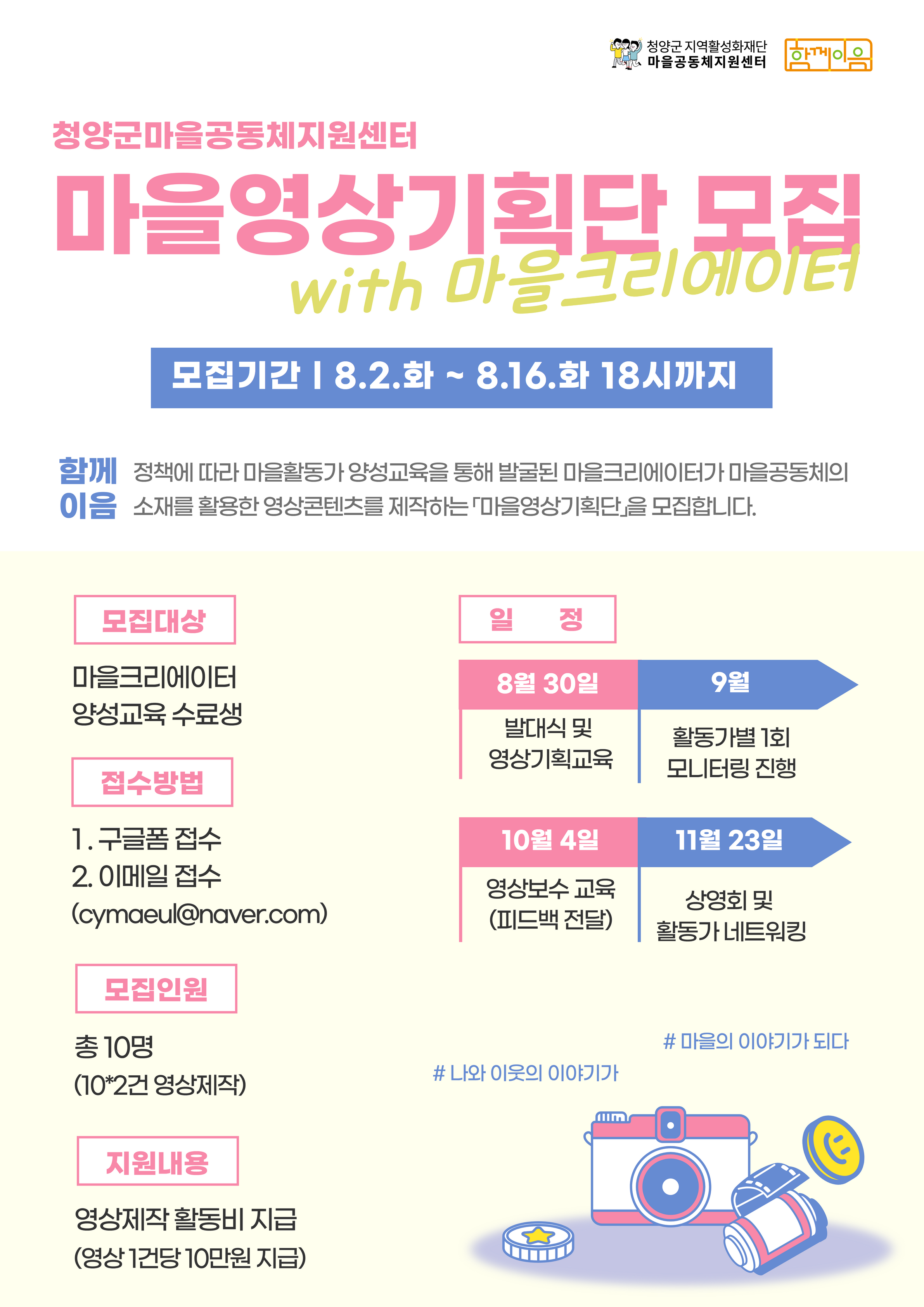 청양군마을공동체지원센터 [마을영상기획단] 모집공고